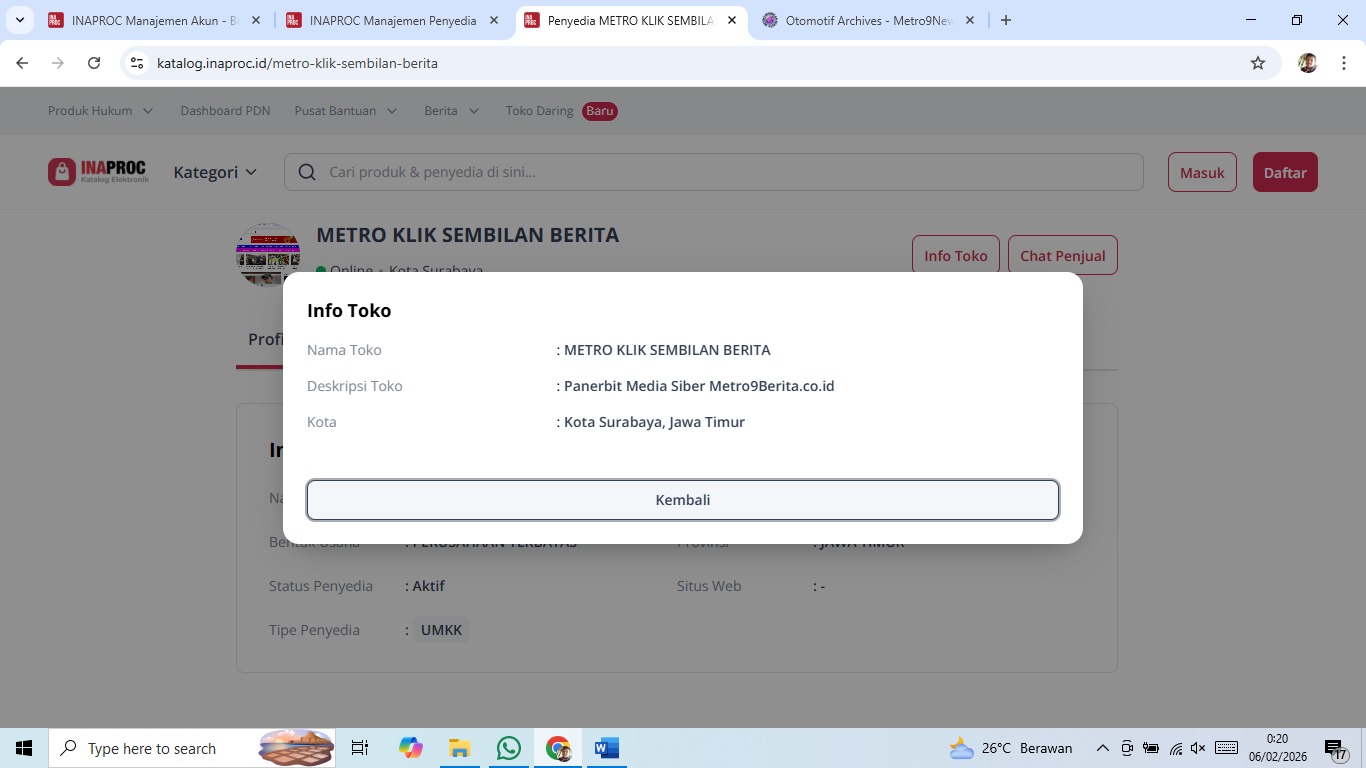 LINK e-KATALOG PT. METRO KLIK SEMBILAN BERITA : https://katalog.inaproc.id/metro-klik-sembilan-berita
